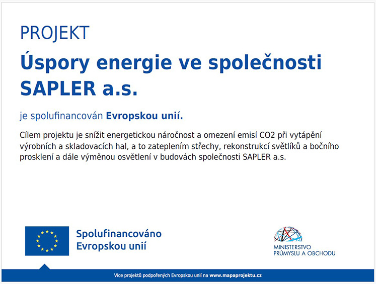Naše společnost rovněž úspěšně zrealizovala projekt Úspory energie ve společnosti SAPLER A.S.